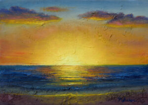Sunset over the Ocean, oil on canvas, 4 x 4″, Sold