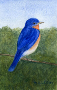 Bluebird, watercolor, 6 x 4″, Sold