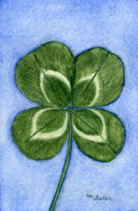 Four-Leaf Clover, watercolor, 6 x 4″, $125
