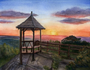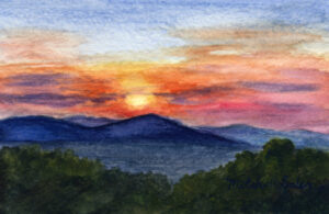 Sunset Mountain View at Mohonk, watercolor, 4 x 6”, $145