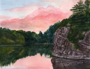 Sunset on Lake Mohonk, watercolor, 8 x 10”, $300