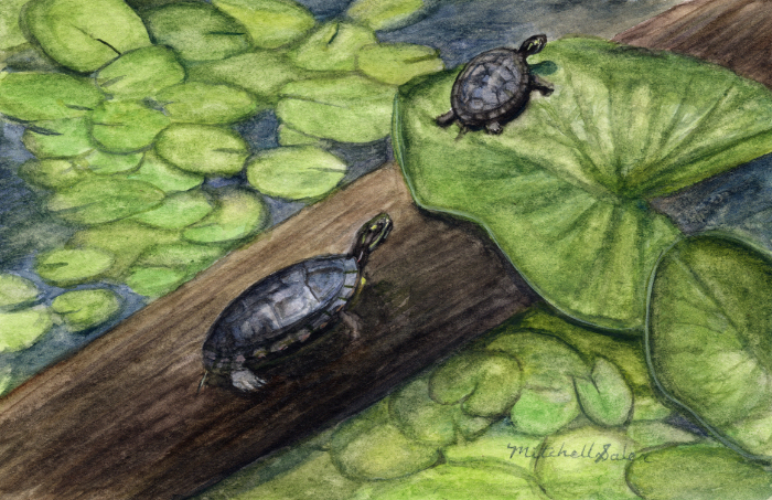Turtle Mother and Offspring, watercolor, 4 x 6”, $145