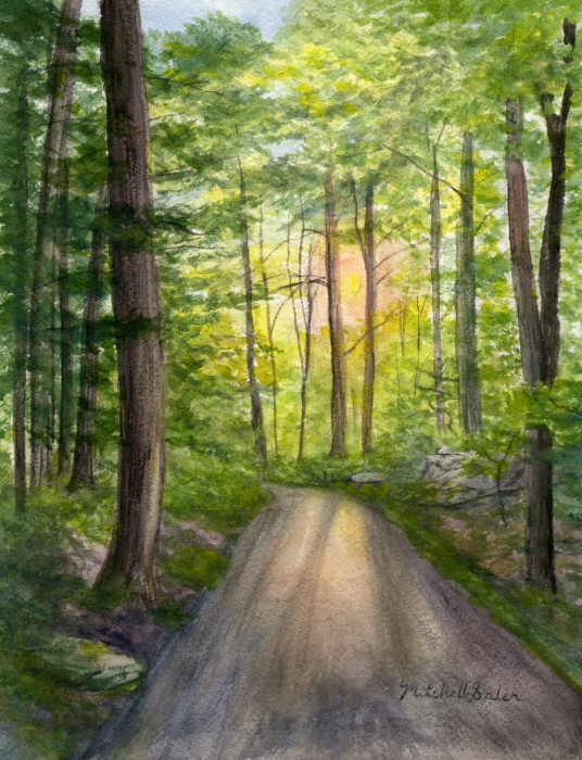 Mohonk Path at Sunset, watercolor, 10 x 8″, $350